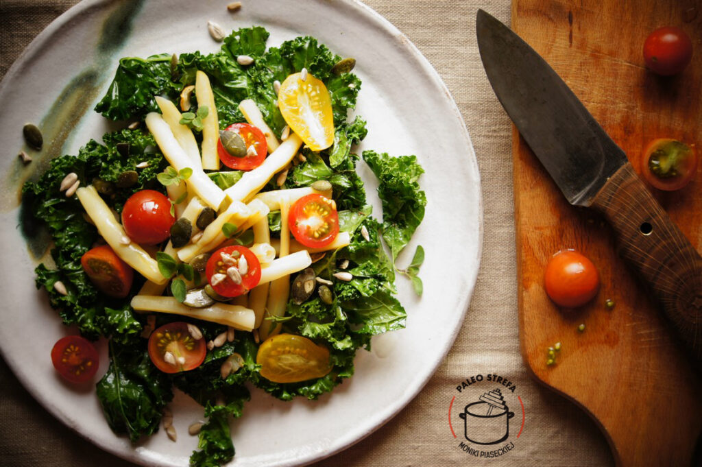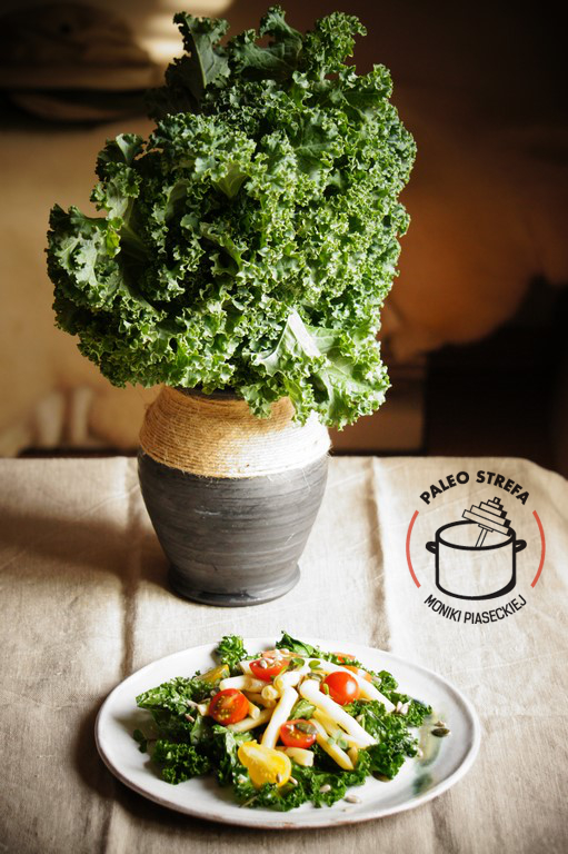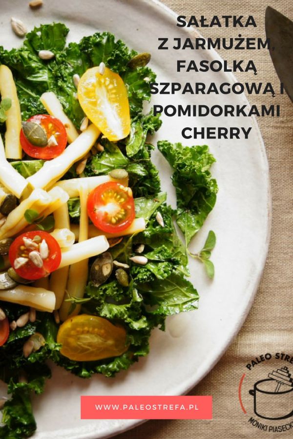 Sałatka z jarmużem, fasolką szparagową i pomidorkami cherry
